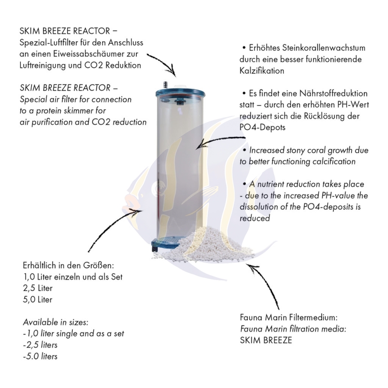 Fauna Marin Skim Breeze Reaktor ist der Spezial-Luftfilter für den Anschluss an einen Eiweissabschäumer zur Luftreinigung und CO2 Reduktion.
