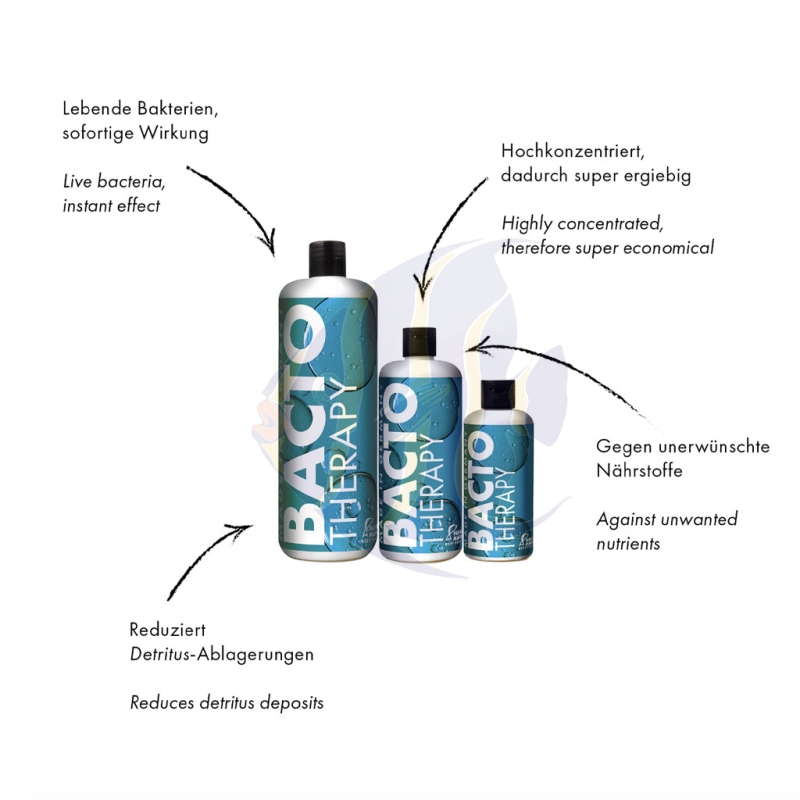 BACTO THERAPY ist eine Mischung spezieller Bakterien, die sich um den Abbau der festen Nährstoffe wie Mulm und Detritus kümmern.
