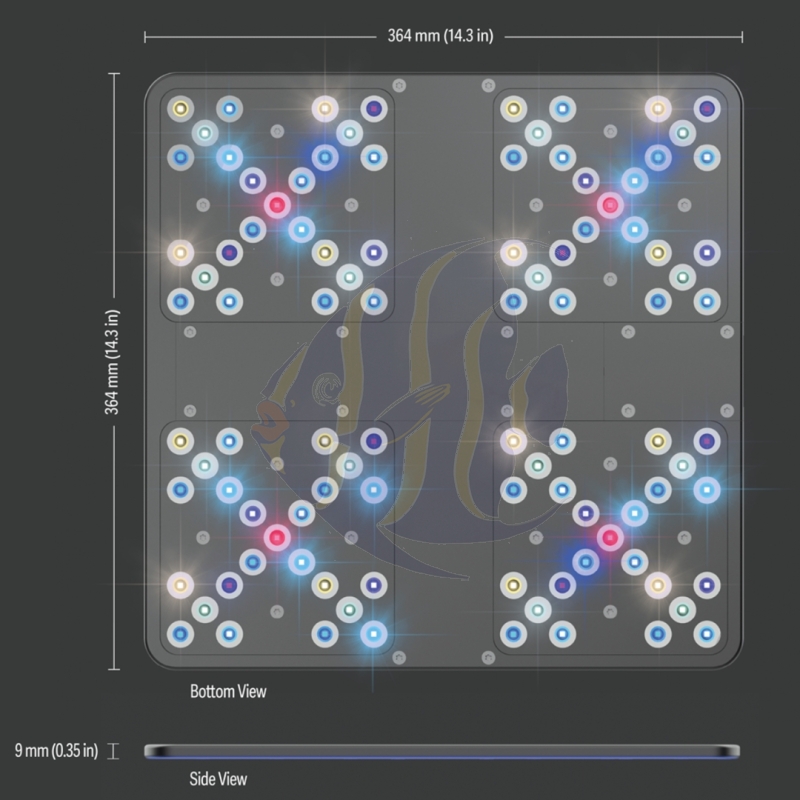 Soft Shadow Technology - Gleichmäßiges Licht für gesunde Korallen: Klassische LED-Leuchten mit kleinen, gebündelten Lichtquellen erzeugen oft Hotspots – Bereiche mit zu viel Licht im Zentrum, während Stellen am Rand zu schwach beleuchtet sind. Die Straton X setzt bewusst auf eine große Grundfläche mit 100 einzelnen Lichtquellen, die für eine gleichmäßige Ausleuchtung über das gesamte Aquarium sorgt. So erhalten Korallen von mehreren Seiten Licht, was Eigenabschattung reduziert und ein gesundes, gleichmäßiges Wachstum fördert.