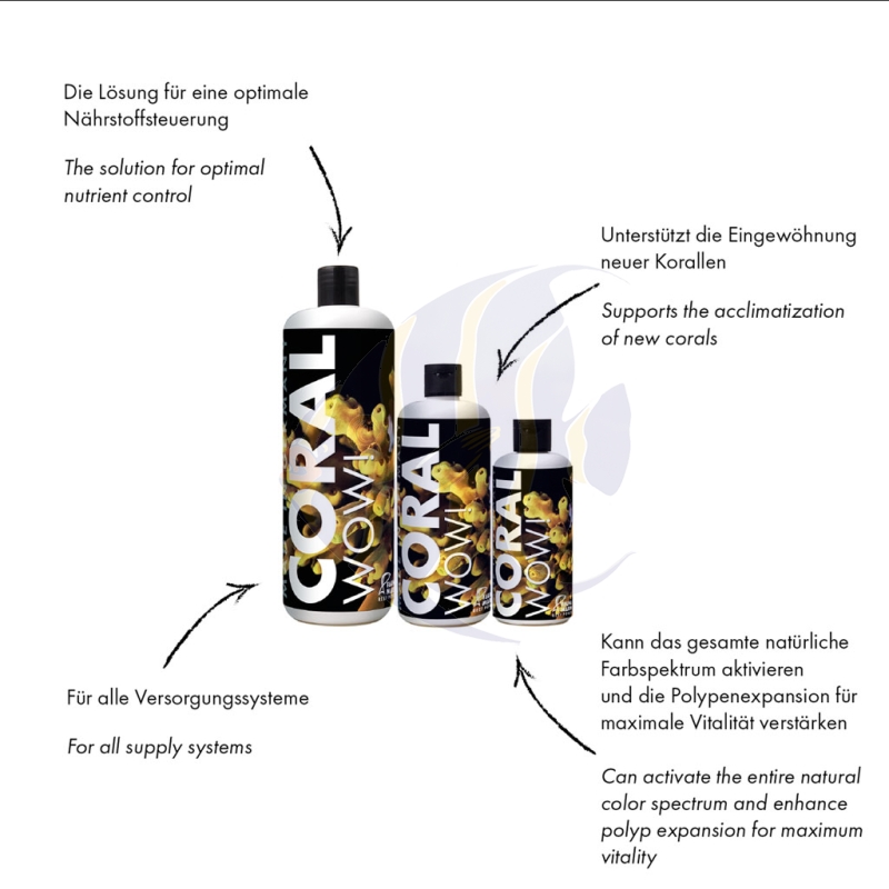 Durch die spezielle Zusammensetzung unterstützt CORAL WOW! eine stabile Nährstoffbalance, was dazu beitragen kann, überschüssiges Nitrat auf natürliche Weise zu regulieren – besonders, wenn sich der Wert im Bereich bis zu 20 mg befindet.