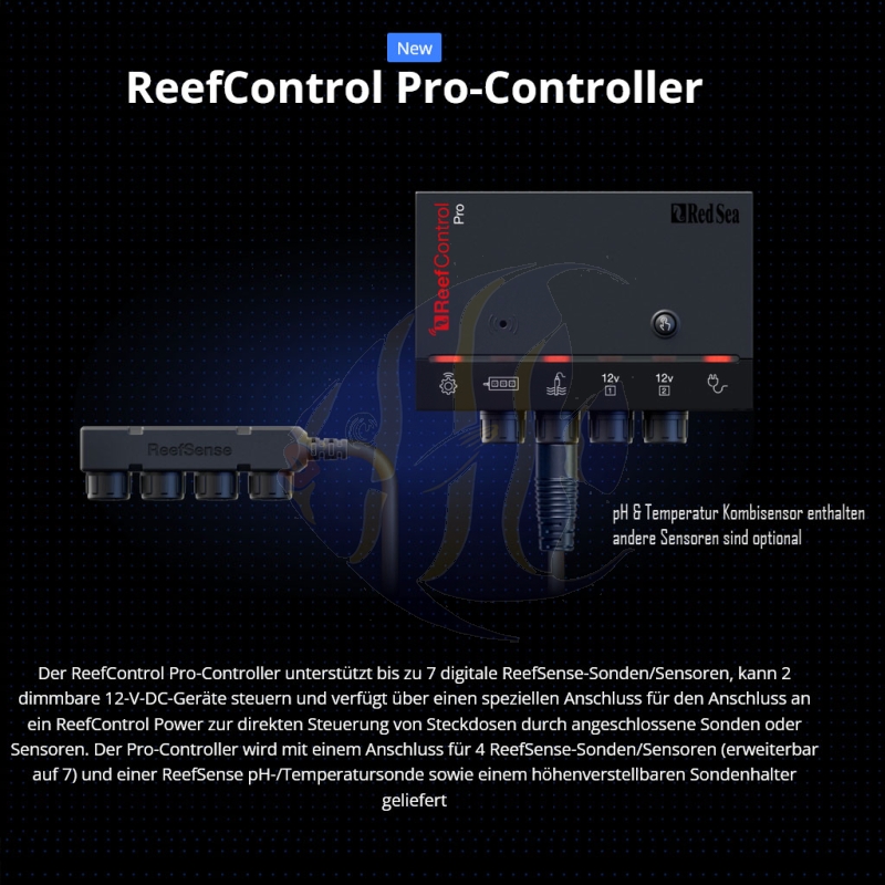 • einem Anschluss für 4 ReefSense-Sonden/Sensoren (erweiterbar auf 7)