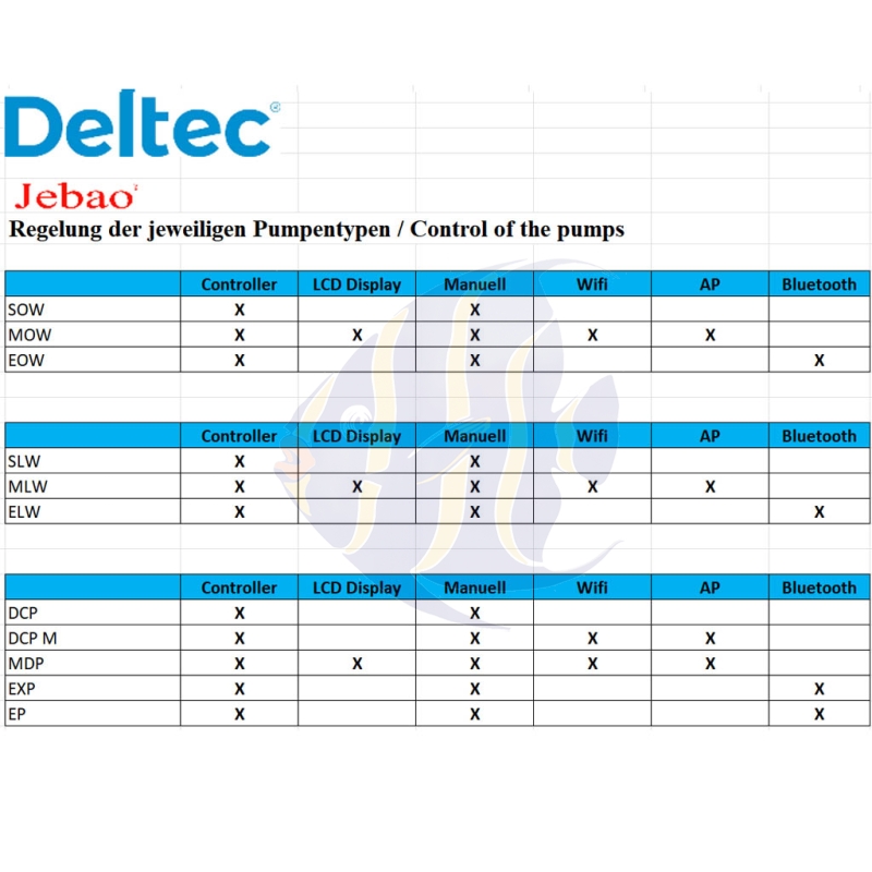 Die Jebao EP-Serie umfasst folgende Modelle: