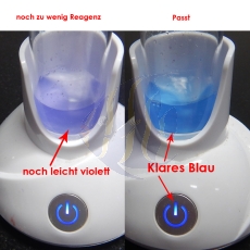 Für einen genauen Test ist es bei den meisten flüssigen Testkits erforderlich, die Wasserprobe nach Zugabe eines Reagenzes zu mischen oder zu schütteln. In einigen Fällen kann es notwendig sein, jeweils einen Tropfen Reagenz zuzugeben, zu schütteln oder zwischendurch umzurühren, bis ein Farbwechsel eintritt. Dies kann zeitaufwendig sein und führt häufig zur Zugabe von Reagenzien, ohne dass eine ordnungsgemäße Mischung dazwischen stattfindet.